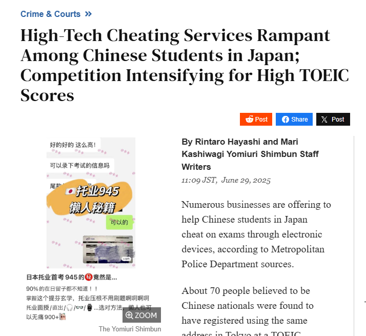 >>736143297This except Chinese always cheat unlike whites who only sometimes cheatIn Japan Chinese cheat on exams so much it is widely known.