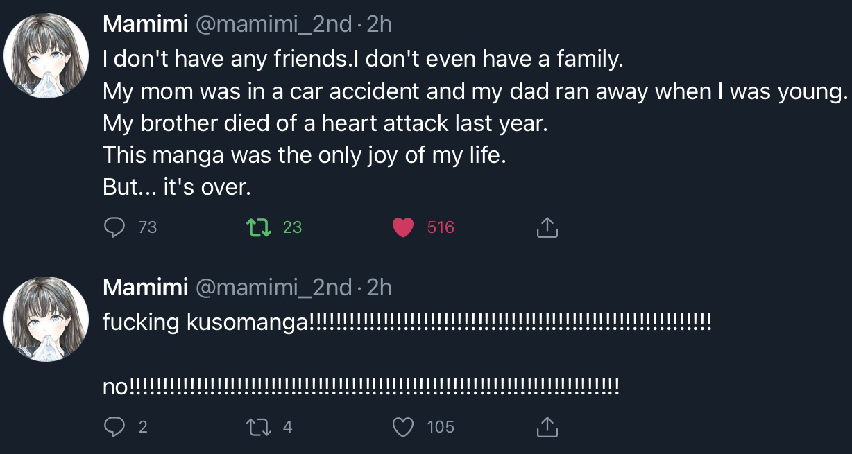 >>736168292Feels like the NTR I remember growing up was motivated by people going "holy shit this harem protagonist sucks he should be cucked" compared to the shit I see these days which feels like "damn let's ruin a perfectly good relationship".The thing that's most baffling to me is when I see a doujin with a girl who has no love interest in the first place get NTR'd because they write in some OC cuck.