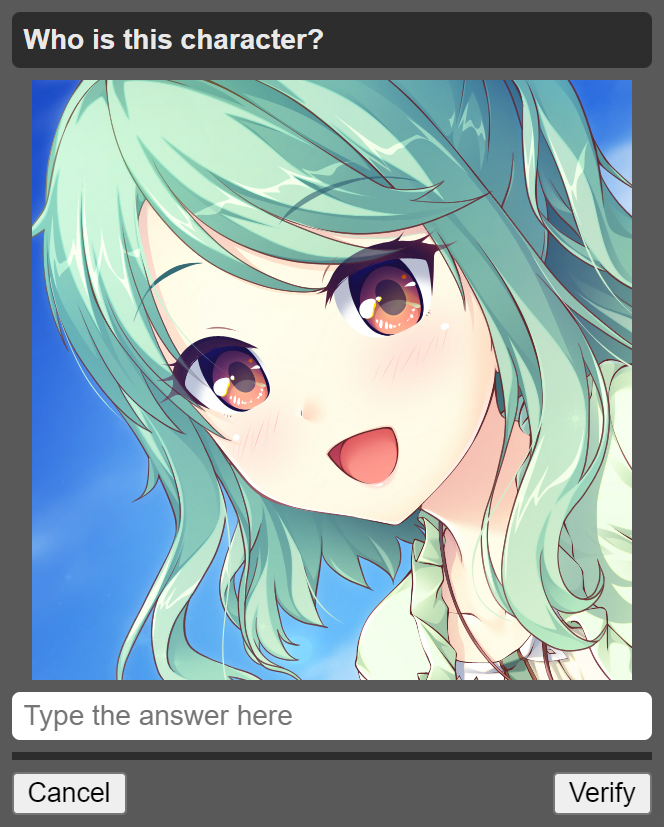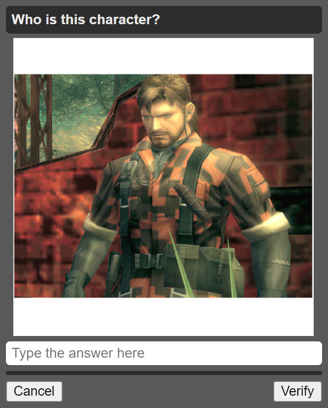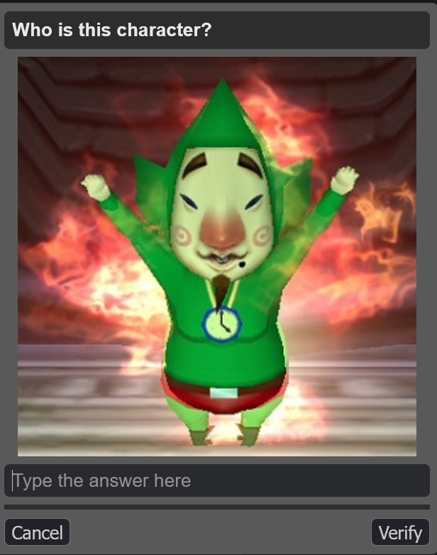 >>736152619>>736152520I'm pretty sure none of the april fools captcha is videogame related, at least I got none so far