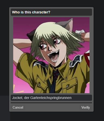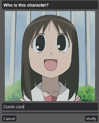 >>736154452Half of them are brits too, non-stop whining about how they don't know anything if it wasn't made 15+ years ago and aired on television. Anything anime, video games or recent to the internet is just not within their purview. If you're too old to recognize a character that'd be one thing, but if you're also too stupid to figure out how to google it, the captcha should time out for 10 minutes. I'd say we should keep this feature if it wouldn't be so easily bypassed by bots.