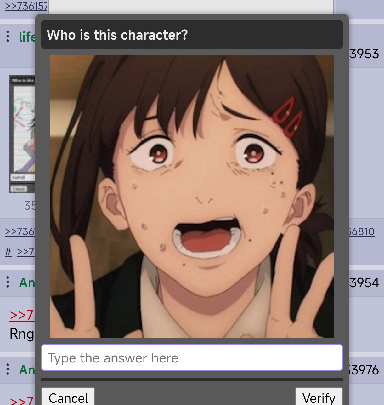 >>736152389I CAN'T EVEN GET THE MEME CAPTCHAS WHAT IS IT WITH THE PROGRESSIVELY SHITTIER APRIL FOOLS
