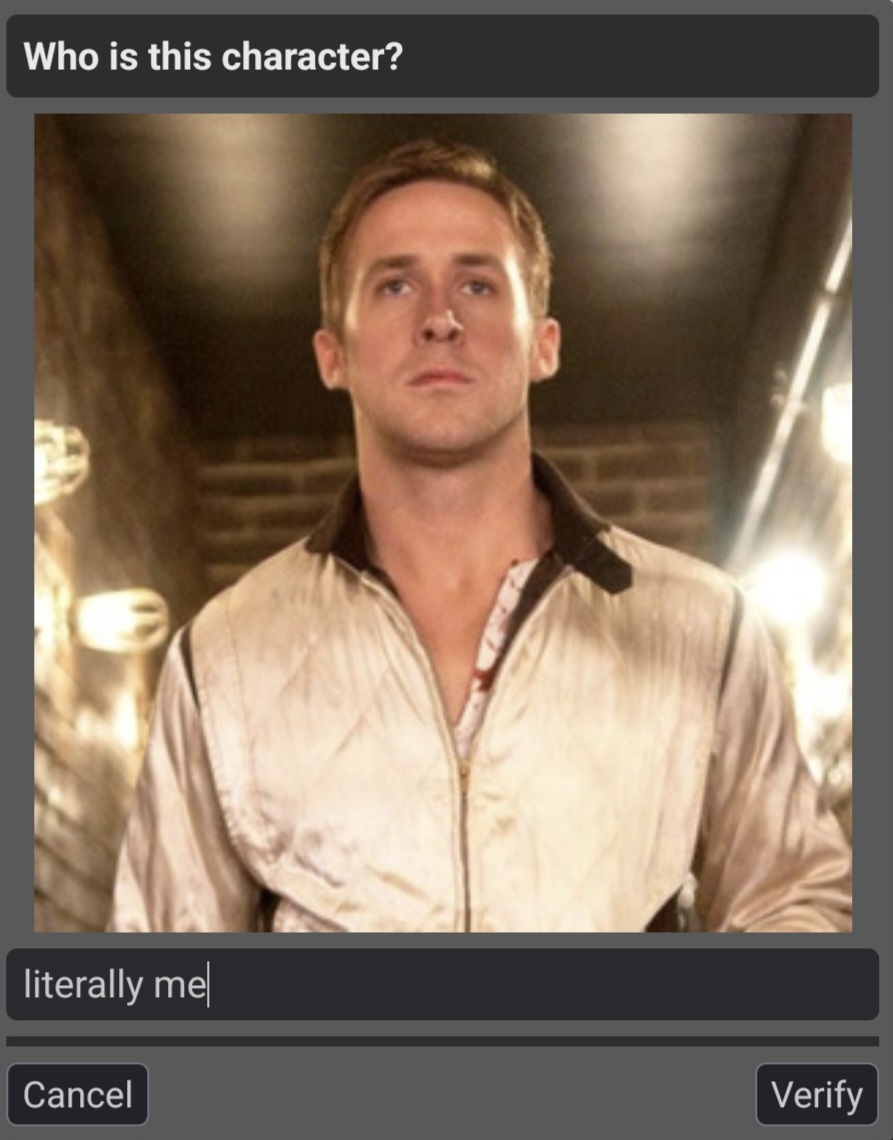 >captcha is the Ryan gosling in Drive>literally me counts This is better than erp fag fests
