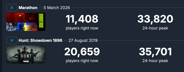 >Hunt actually has higher CCU than Marathon