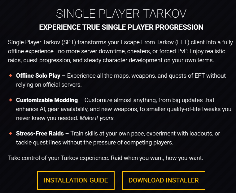 >>736157701>150+ modsReccs?I bought Tarkov long long ago, my PC wasn't really good so it was a pain to play and also I kept getting rapedUpgraded my PC, heard about SP tarkov, played for a bit but it wasn't very interesting honestlyAre there mods to make it better?