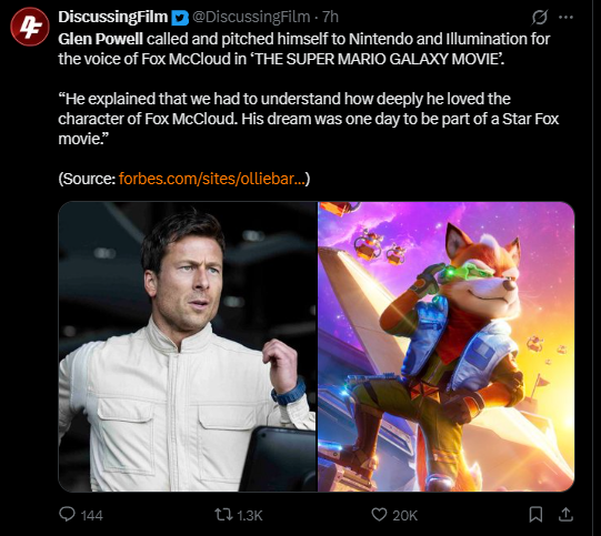 >>736155367Foxbros... our movie is coming.https://nintendoeverything.com/star-fox-movie-glen-powell/