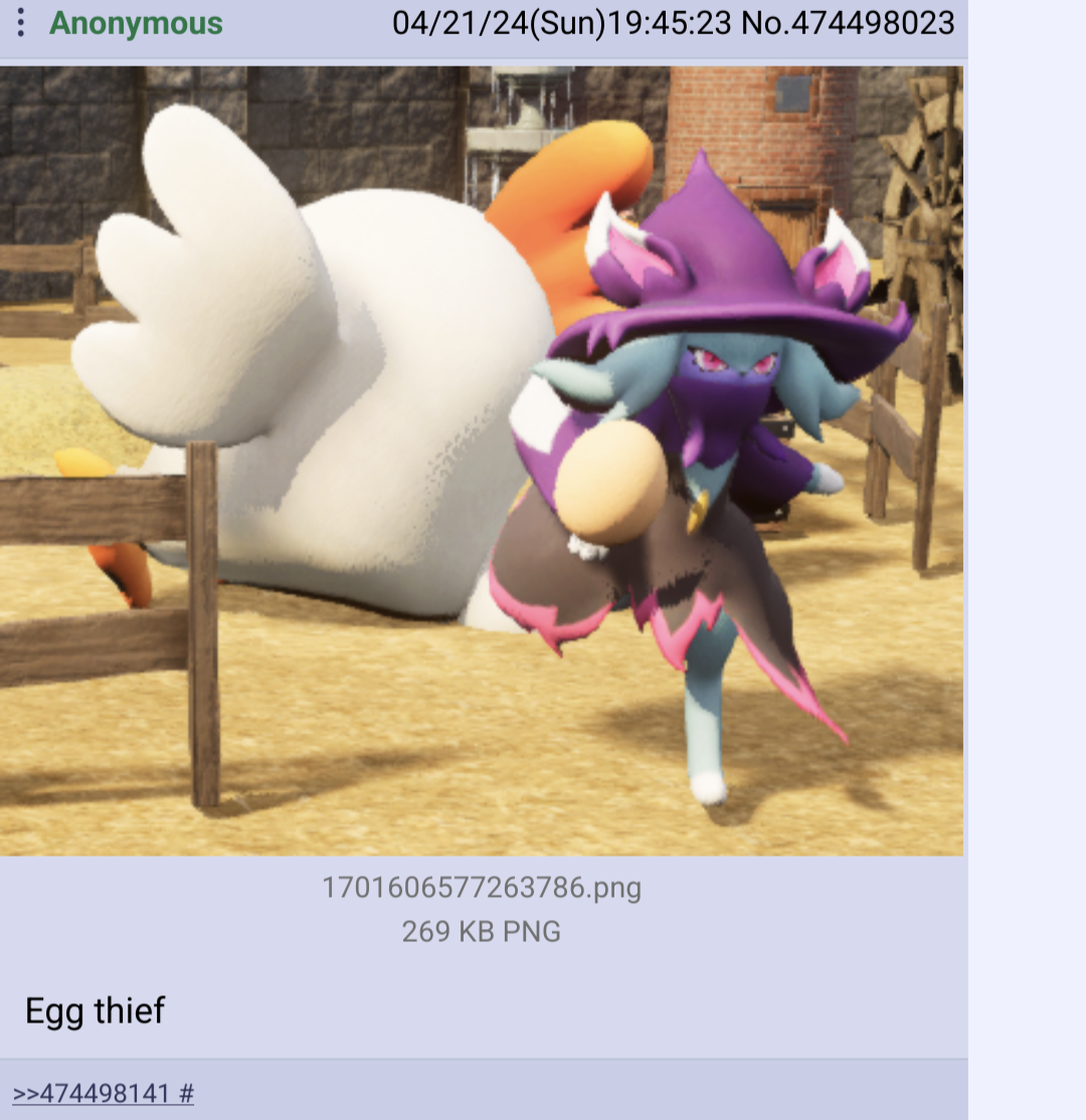 >>736170670>The Palworlds is a danger to themNot it's not.Palworld is attractive to (ex-ish) pokéfags who have given up on GF's games. The kind that still follow pokémon news but haven't bought a game since many gen.It stole no business from them.