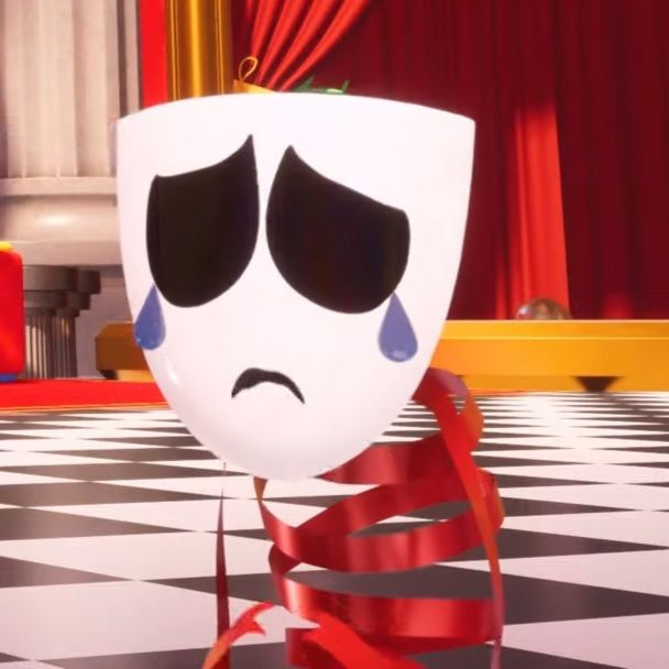 >>736186859pomni (humans) wakes up in her bedroom with her ragdoll, bunny plush, chess set, comedy mask, funny construction figure and wind up chattering teeth from a cray dream