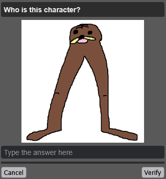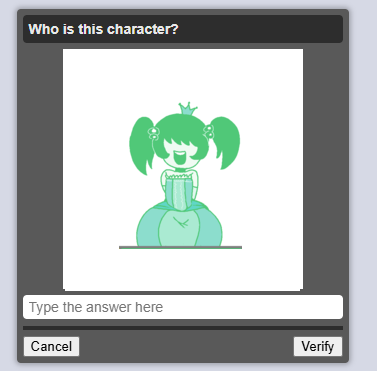 >>736182027The mods are literal redditors. We know from the hack that there isn't a single one left that used the site before 2016. Look at these captchas, half of them are gacha, vtubers and shit like Digital Circus, and the other half are popular widely known 4chan adjacent things. It feels like someone went to Grok and typed "come up with 20 memes or characters related to early 4chan" and went off of that.