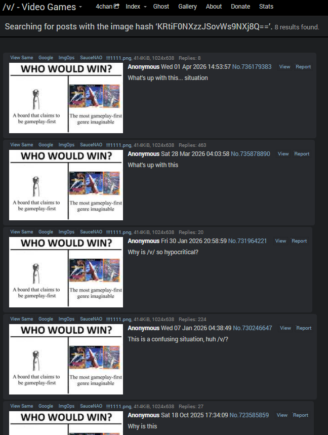 As usual, threads like these expose a very confusing paradox: despite frequenting a board dedicated to gaming, /v/ users have zero love for gaming and don't like playing games.
