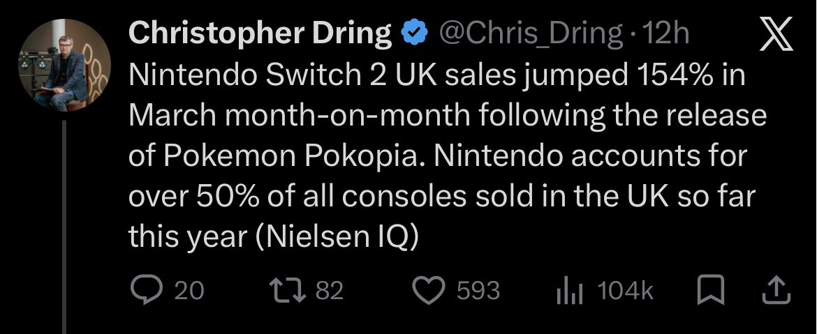 >The Switch 2 launch boosted third-party game sales by over 75%, adding $1 billion in revenue.> With Sony and Microsoft raising prices of their consoles to astronomical heights, developers and publishers could now be eyeing the Switch 2 as a more viable platform because it's much more accessible than those of Nintendo's competitors.Seems like Nintendo will keep holding back the gaming industry now.