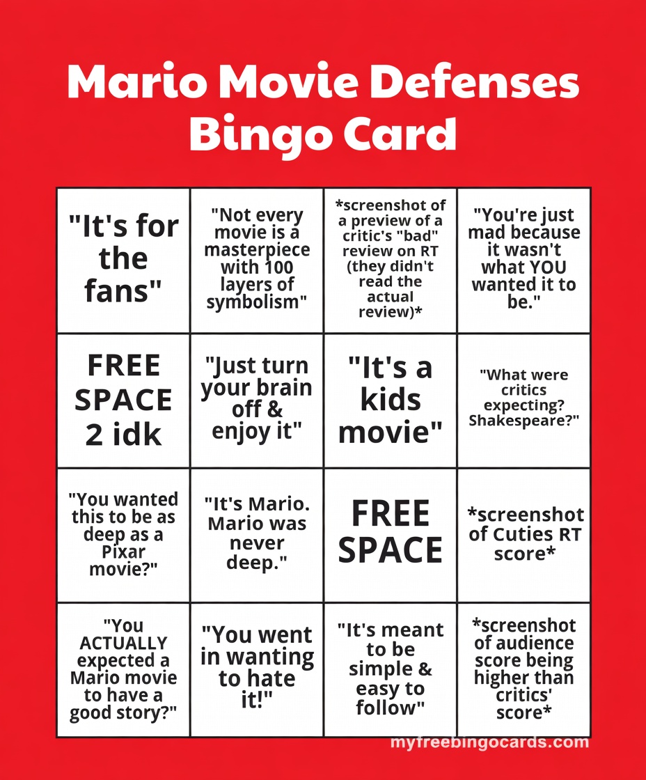 "we respect the source material" starter packAt least 60% of the girlbossing in these movies is completely unnecessary and just makes it more boring. There are like 10 minutes of Peach doing the exact same thing as Mario just to show that she can do what a man can do instead of having her do her own thing with her own subplot (ideally one without action so the pacing can breathe a bit)