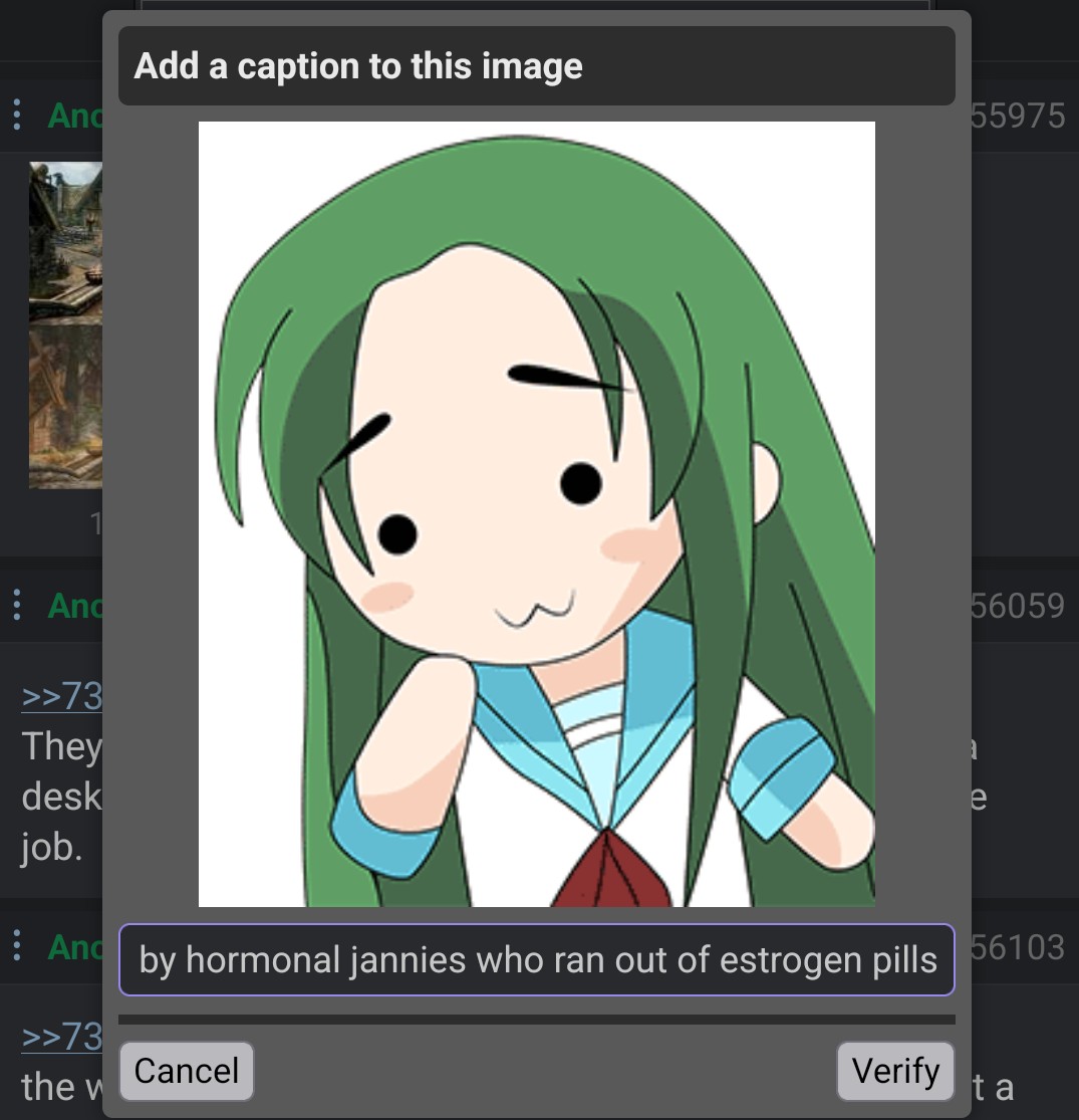 >Caption This!>Me when I get banned by hormonal jannies who ran out of estrogen pillsThis was marked incorrect for some reason