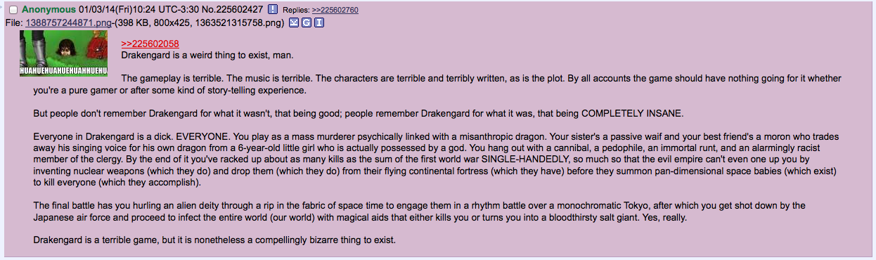 >>736216005>OP thinks Drakengard fans actually like to PLAY DrakengardKek
