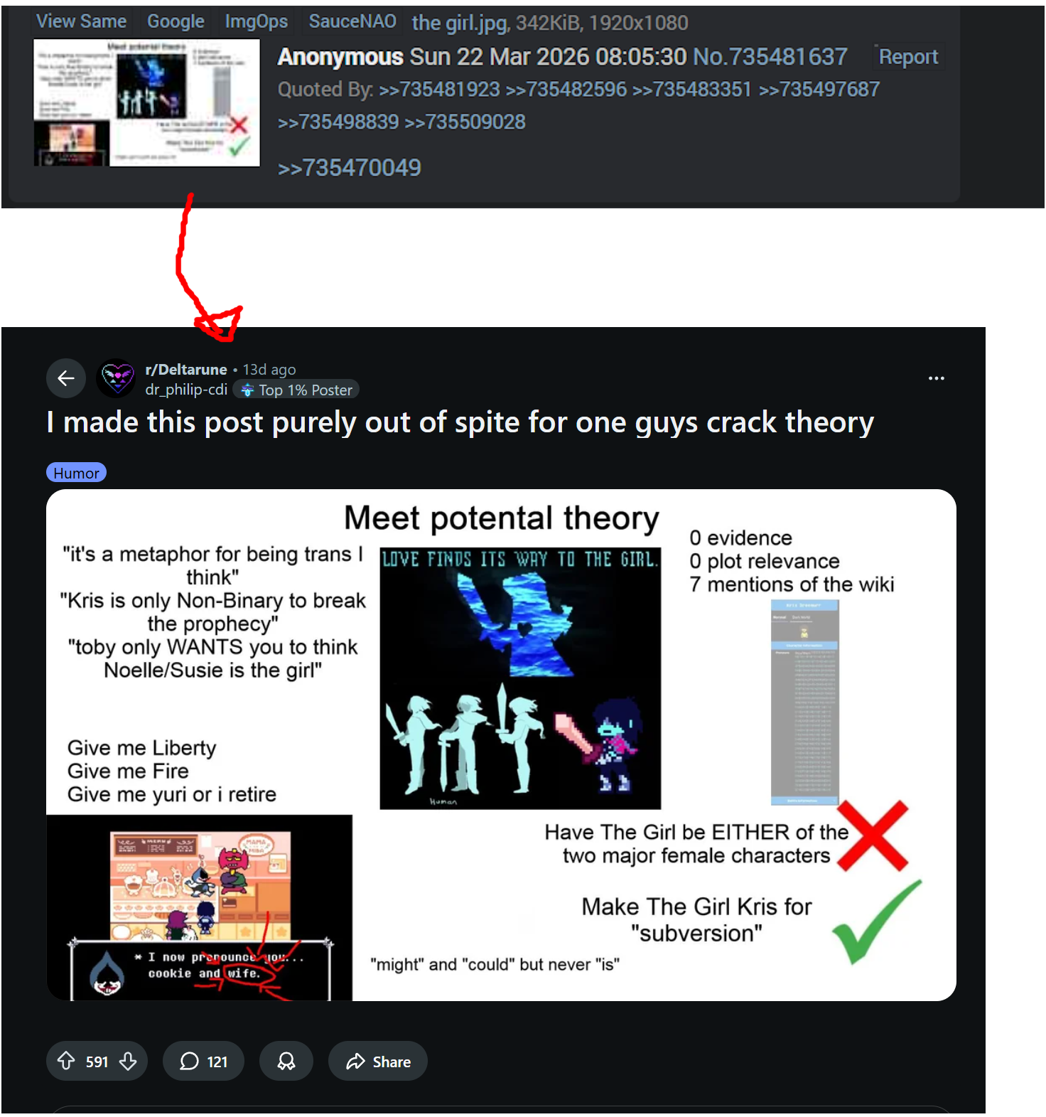 >>736241252>No, he was whining about Noelle knight.Why do you say something that can easily be proven wrong?https://arch.b4k.dev/v/thread/735466847/#735481637https://www.reddit.com/r/Deltarune/s/QTGSh63gHY
