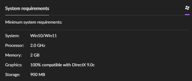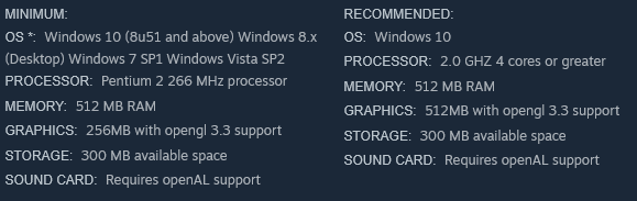 >>736231682>the fuck do you want them to list? windows 98, geforce 256 and pentium 2?https://store.steampowered.com/app/1162750/Songs_of_Syx/