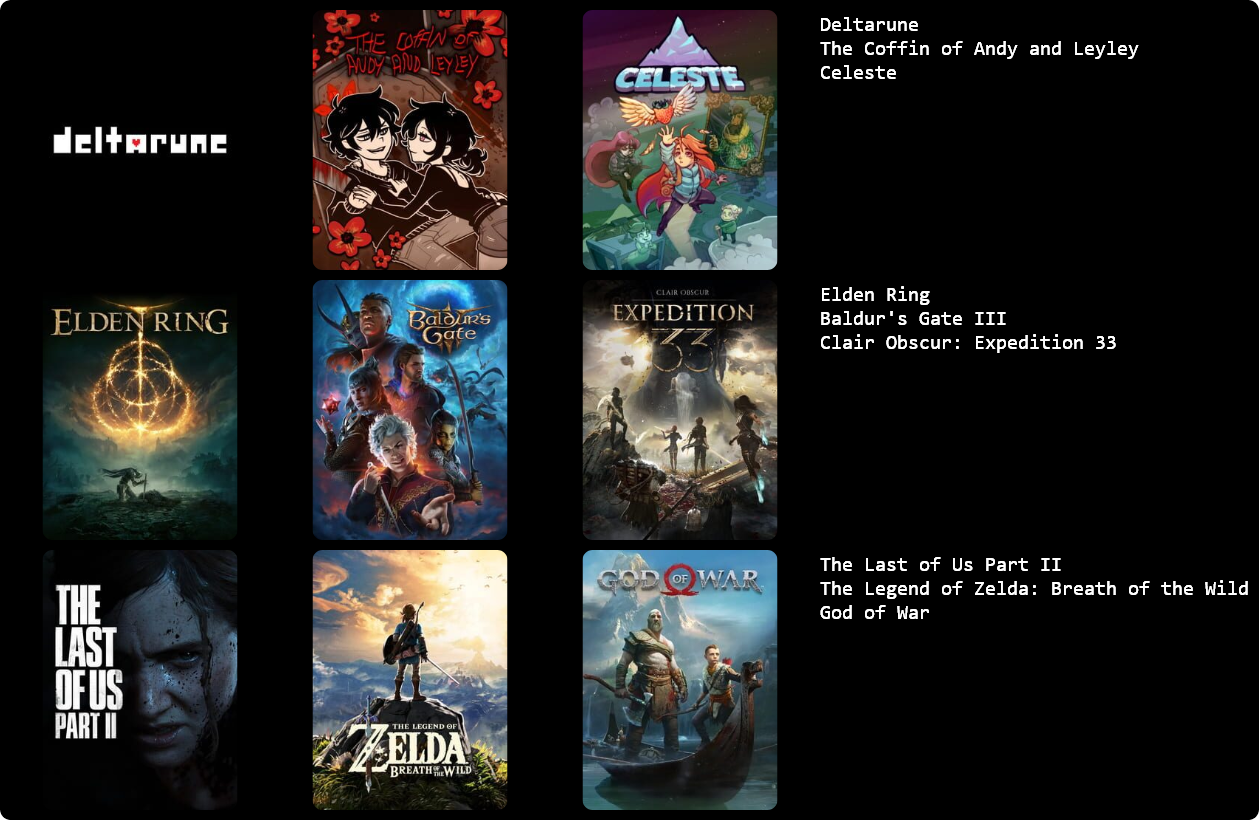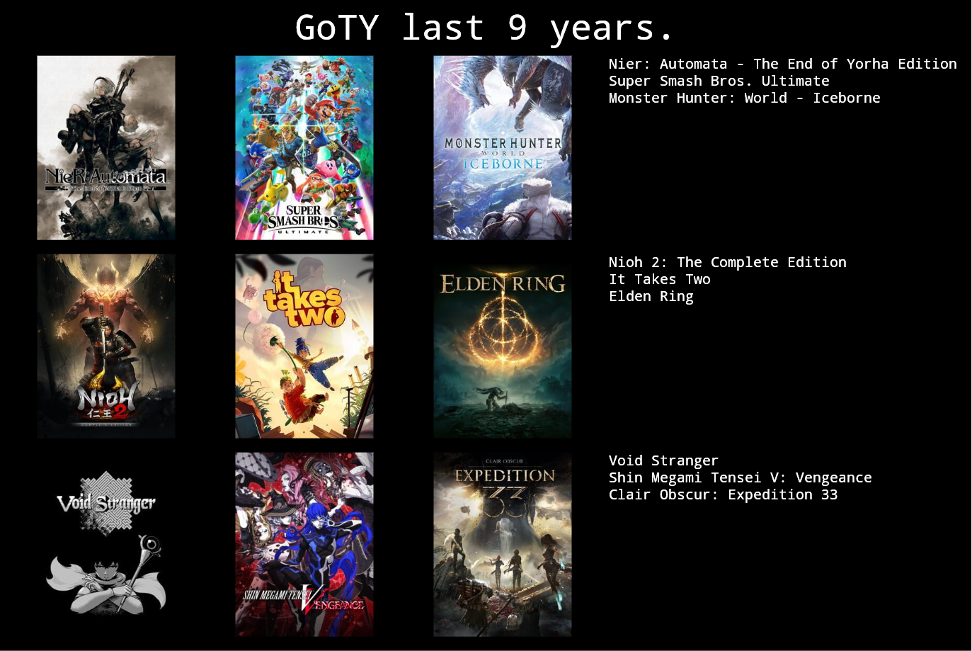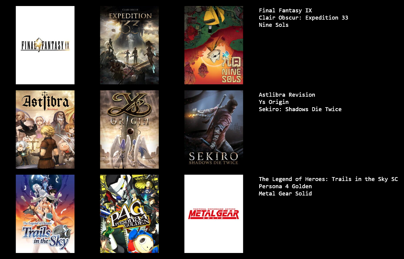 >>736235763zoomers are performative, only a zoom zoom would put a game like FFX and ER together on the same list