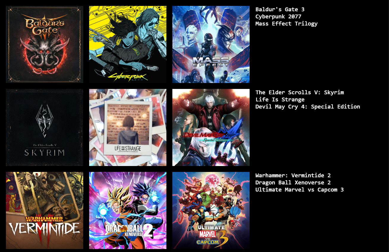 >>736233338No Sekiro Dishonored Max payne 1TetrisKys