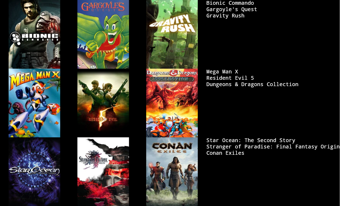 >>736241754>bionic commando>re5>stranger of paradiseI thin kyou just like solving your problems with your fists