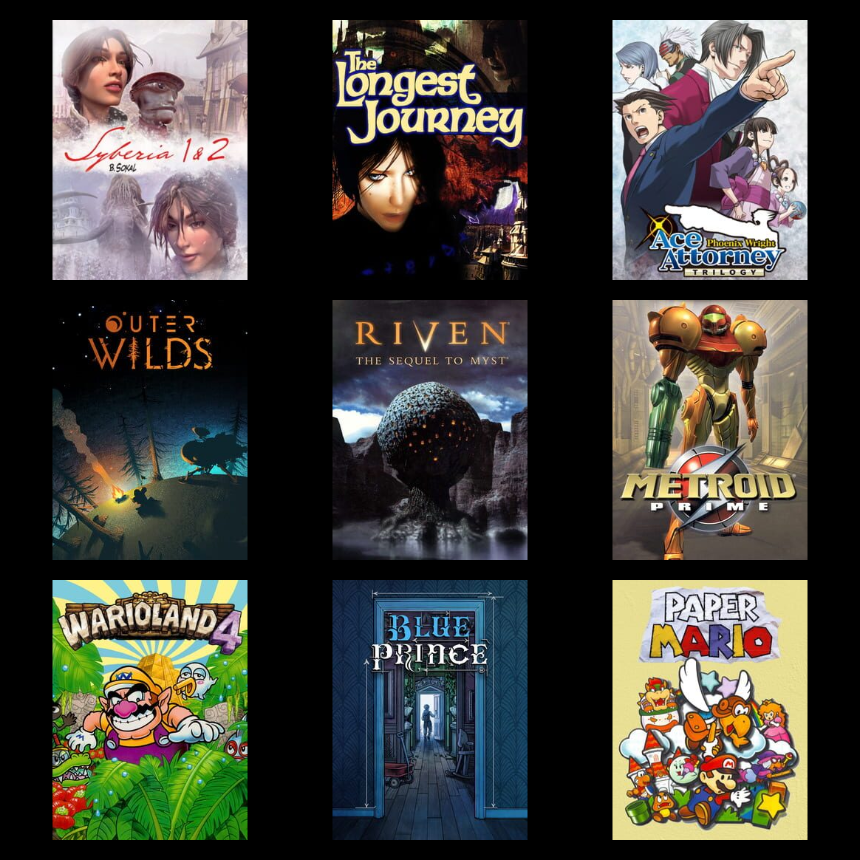 >>736245443Chrono triggerSkyrimElden ringKirbyMoviegameslop