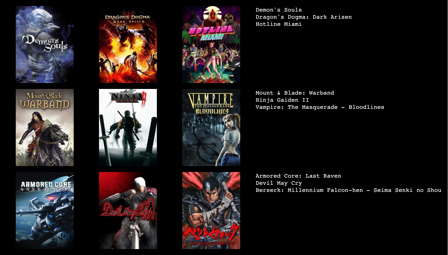 >>736233338No Sekiro Dishonored Max payne 1TetrisKys