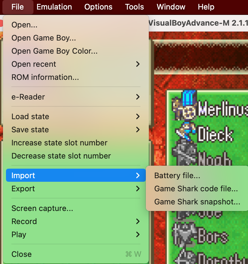 >>736246575The save is the strangest part: you have to plug it in the emulator's folder for ingame saves instead of the save states for the emulator itself, and rename the save so that it has the same name as the game rom.