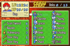 >>736247430Roy needs to reach the throne within 20 turns, or we loseRoy dying is game overIf Zealot dies we lose (you can leave him on the bench)If we lose the Durandal we loseEveryone else is disposable, everything else is optionalGood luck