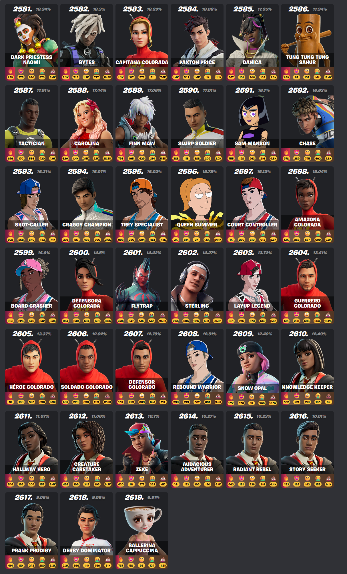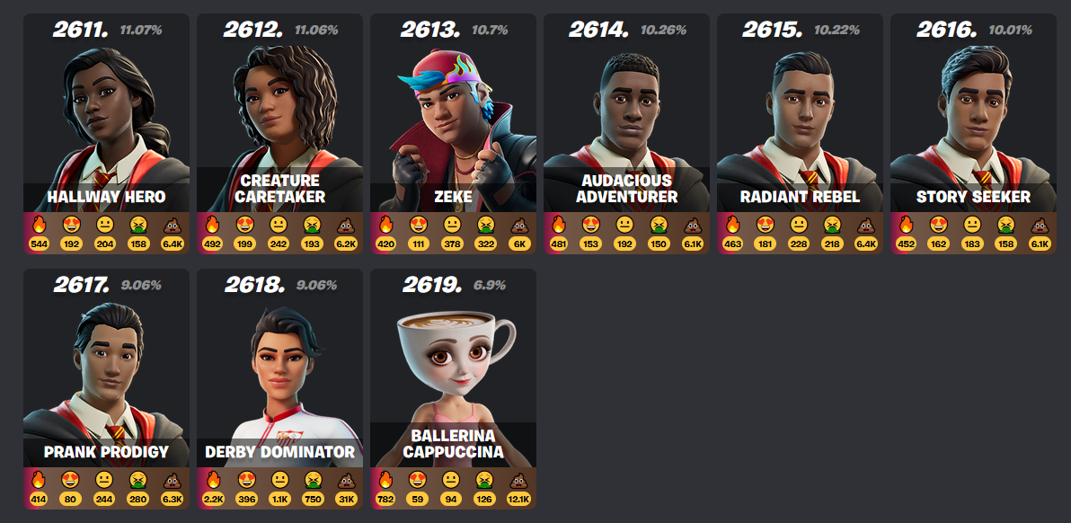 >>736245302>2619wait, you are telling me there's over 2600 fortnight skins?