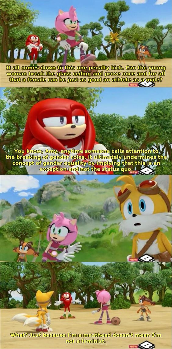 >>736260813>celebrating women's achievements is acknowledging that most women are not capable of doing anything worth celebrating.sonic boom of all things had a gag with that exact punchline