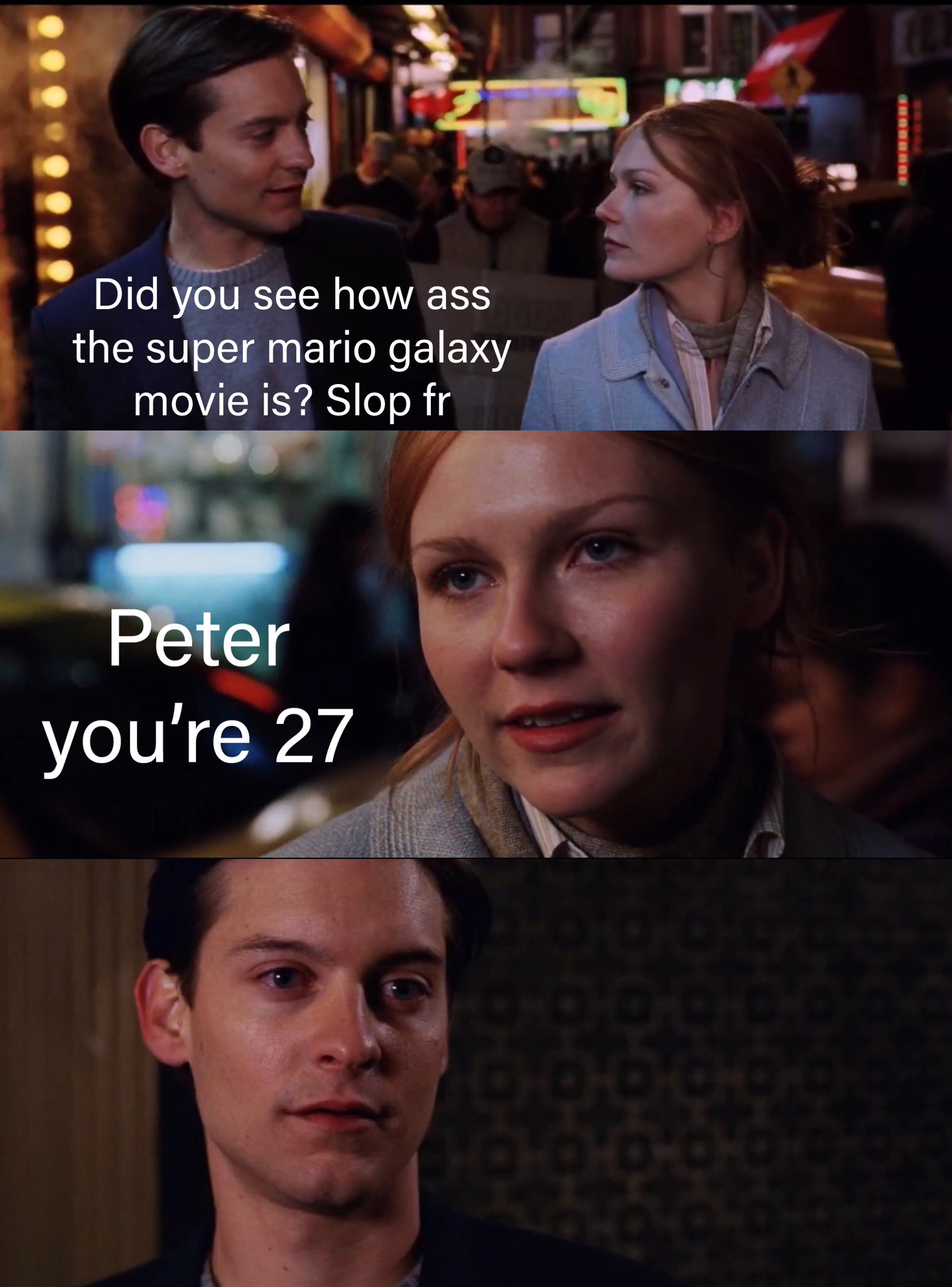Peach is a complete loser in most of the games, especially in Galaxy, the difference between her there and in the Illumination movies is like night and day. Imagine some kid playing Galaxy after seeing this film only to get whiplashed with Peach being a pissbaby in the intro.