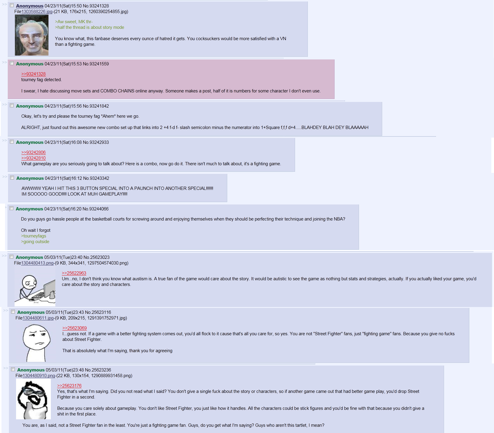 >>736255231>>736255369This is my problem with the new games. They tried to be a serious fighting game when the series only got big because of cool fun characters, fatalities and cheesy story. If I wanted a proper fighter, I would play Tekken, SF, Soul Calibur, Smash Bros, Virtua Fighter etc. For MK I want something casual with a variety of modes, lots of content and unlockables. Not eSports shit.
