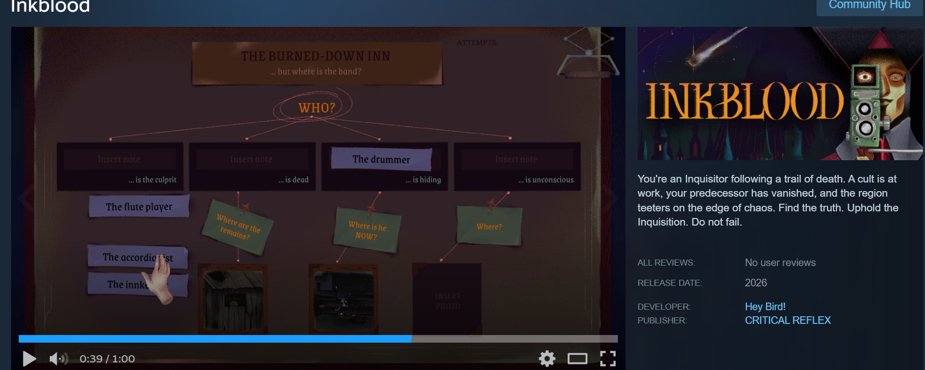 Found this mystery game that looks pretty neat. I'm always on the lookout for things that remind me of Golden Idol or Obra Dinn