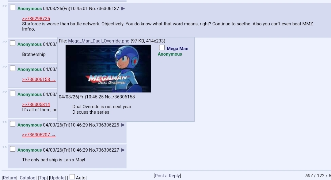 >>736307980Wheres the gameplay in these threads? What makes this any different than the /m/ thread schizos spammed til jannies had to come clean it up and then the thread fucking dies after people started talking about Mega Man, or the way you schizos split mega man into TWO generals on /vg/( /inti/ + /mmg/ ) ffs that are slower than this one but have some of the exact same posts, or even this "totally not a general" you skipped another perfectly good thread that was LINKED in that thread like a fucking general on /vg/ would be mind you nevermind the same shill wording and reusing images from a week ago.Fuck off back to /vg/ alreadyThis shit is getting fucking creepy. These games are 20 year old ports Battle network threads didnt even do this shit ffs