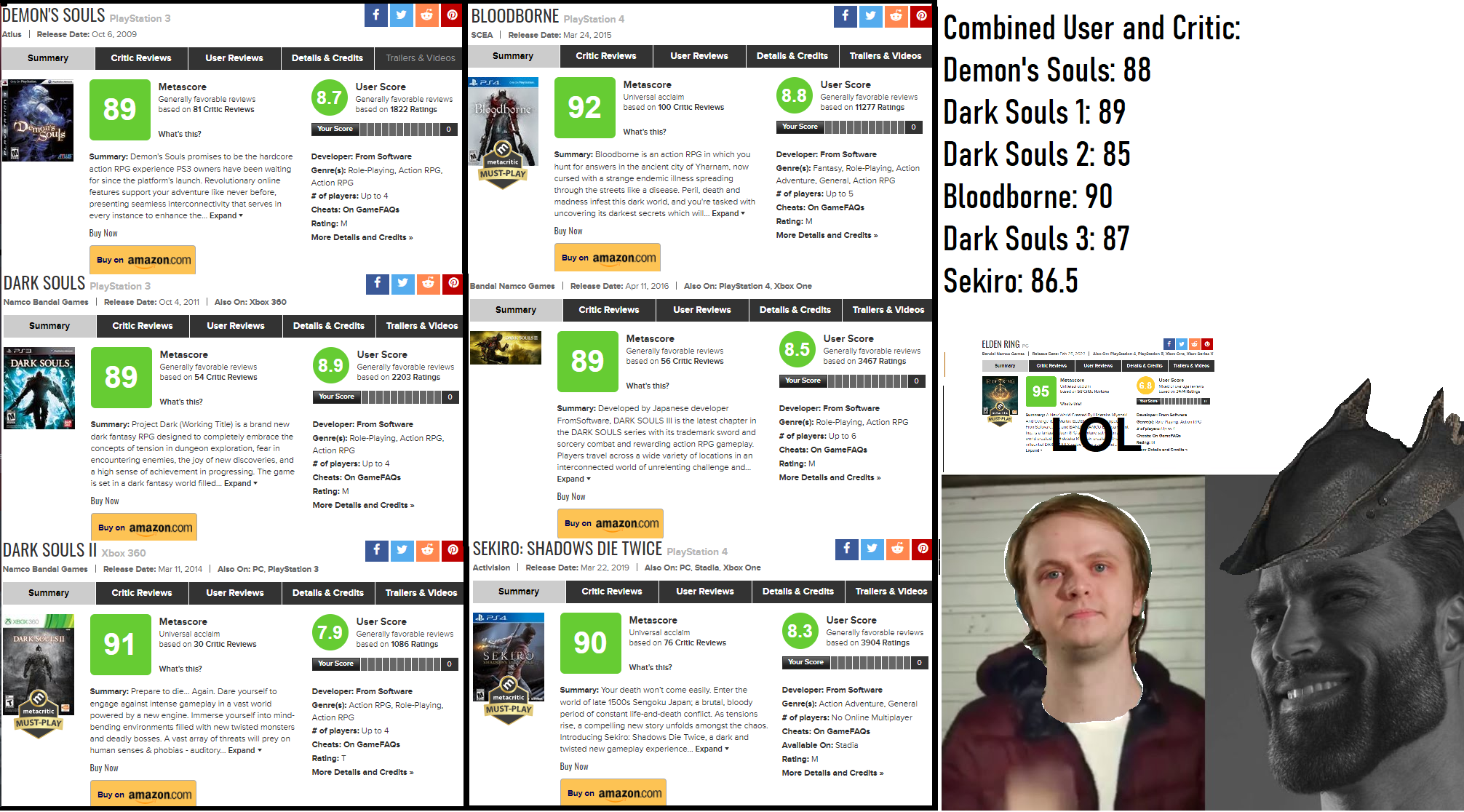 Good souls games: Demon Souls, Dark Souls, Dark Souls 2, SekiroBad souls games: Dark Souls 3, Bloodborne, Elden Ring
