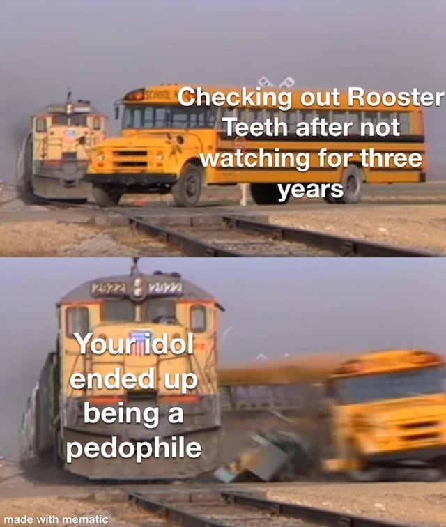 >>736321828I think some nobodies at rooster teeth were stupid enough to get me too’d. I don’t think Geoff did, but he get JUST’D to oblivion. I wish Matt and Gus got Me Too’d though, that would have been hilarious.