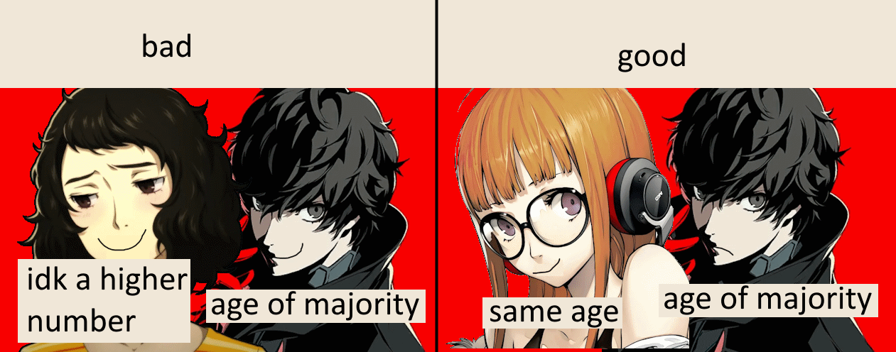 >>736329064It's not even the same age gap either, Kawakami is WAY older than Joker while Futaba is only 2 years younger than him, and people claim Futaba is the "wrong" romance.