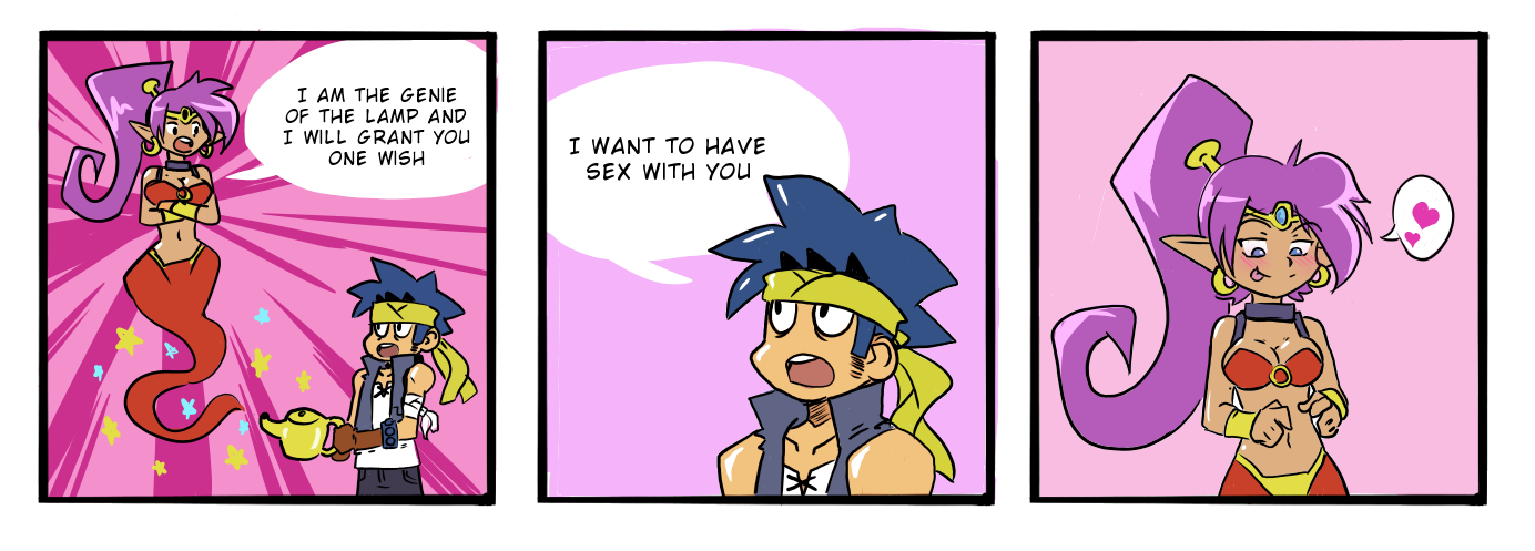 >>736328153>Punchline isn't "bend over" Do you understand geni wish hijinks at all?