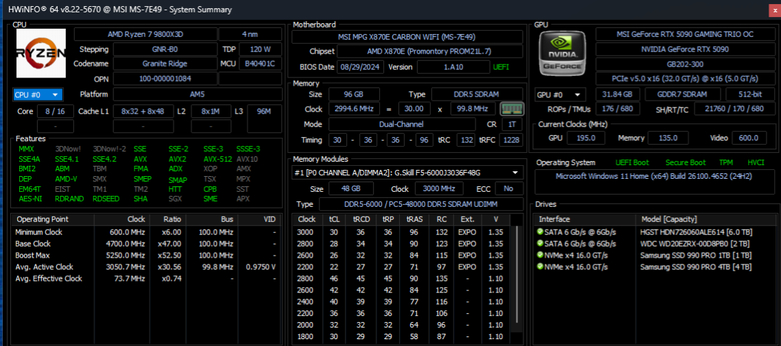 my 2011-era sli gtx 570/i5 2500k went tits up a few weeks agoi'm honestly amazed it lasted so long, that chip was running overclocked from 3.3GHz to 4.5GHz with a pretty chunky overvolt on air cooling for almost fifteen fucking years, and those gpus almost caught fucking fire every summer too.i just put together a 9800x3d/5070ti build to replace it, it aint quite as bleeding edge as that old build was back in 2011 but its capable enoughcurrently playing through talos principle 2, a game i've put off playing for ages (couldn't have run decently it on the old machine)