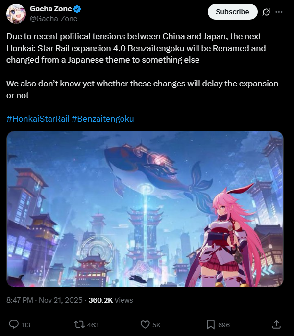 >>736334330/hsrg/ was going on about how Tencent wasn't under CCP control because it seemed like only miHomo was getting pressured to erase the Japanese. Japanese artists were canceled from attending HoMoFest and the new HSR planet is a weird blend of it is Japan but it's trying not to be Japan.>>736334476They can't remove an entire major region from Genshin after however many years of it existing. But there was, maybe still is, a push to get rid of or hide new Japanese elements.