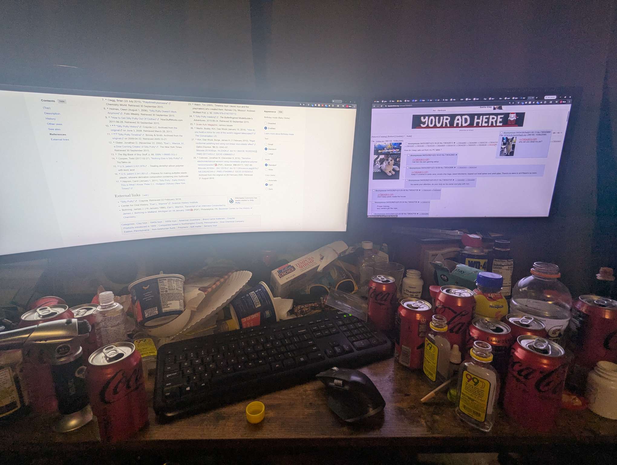 Unless there's a real issue with the kitty laying there, just let them be. They want to be near you and the PC / monitor area is often warm. Clear out a little space if you don't want him trying to do the >If I fits, I sits in places that may push things out of the way accidentally when s/he flops down. Mine would lay on my deskmat above the keyboard/mouse, among other spots in the room. If you get them a little cat shelf/hammock thing and put it near the window so they can hang out there annd look out, while also being close to your desk, its a nice option if its safe and has the space. Enjoy that the cat wants to be close to you, anon. You may miss it one day.