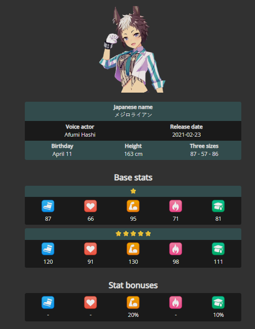 >>736351326You're not racing enough. A win always gives you 100 shop coins. Your overall stat:coin conversion ratio can be around 0.4, so winning any race (not just G1) can net you +50 in total stat points.