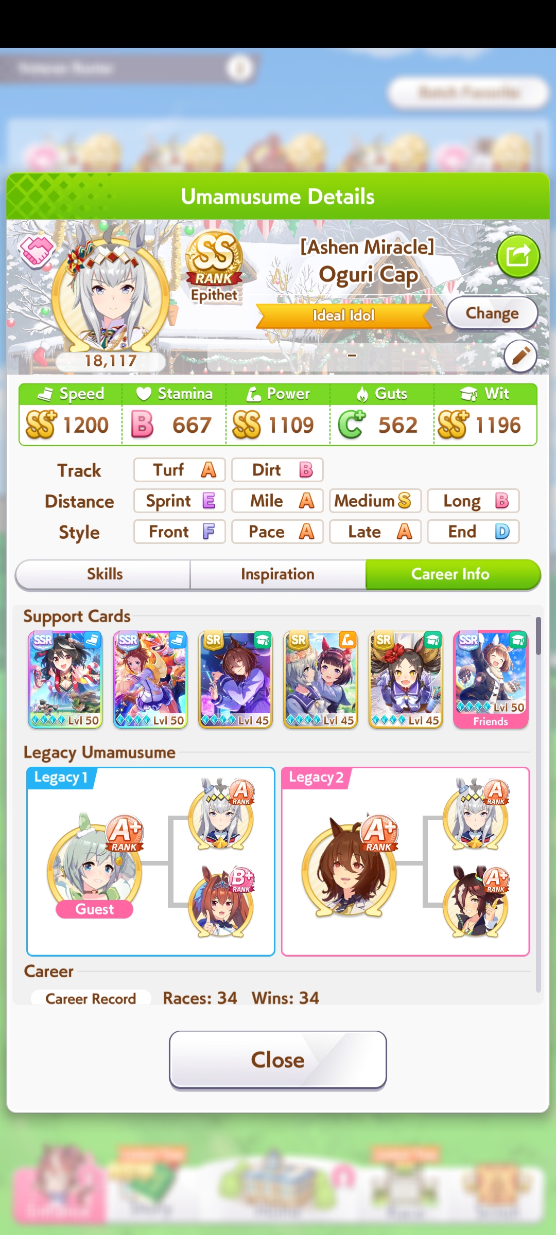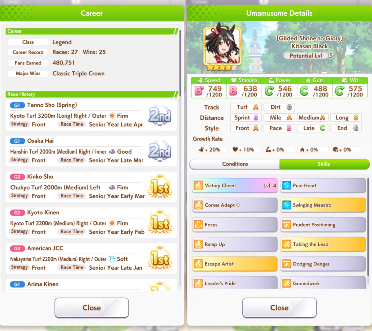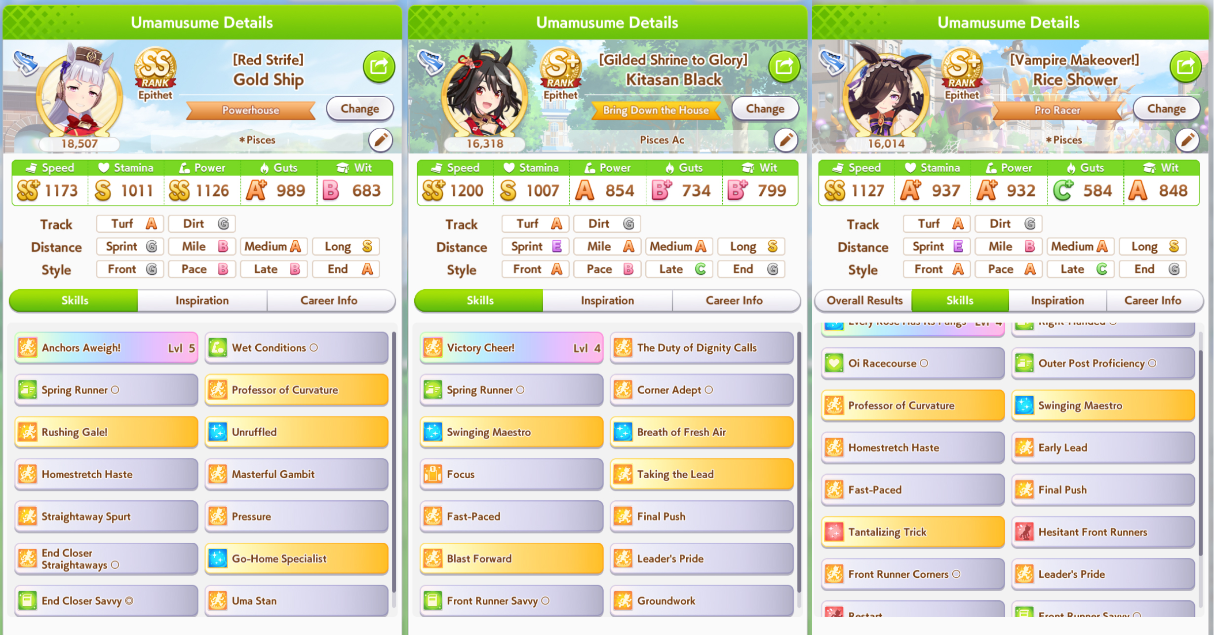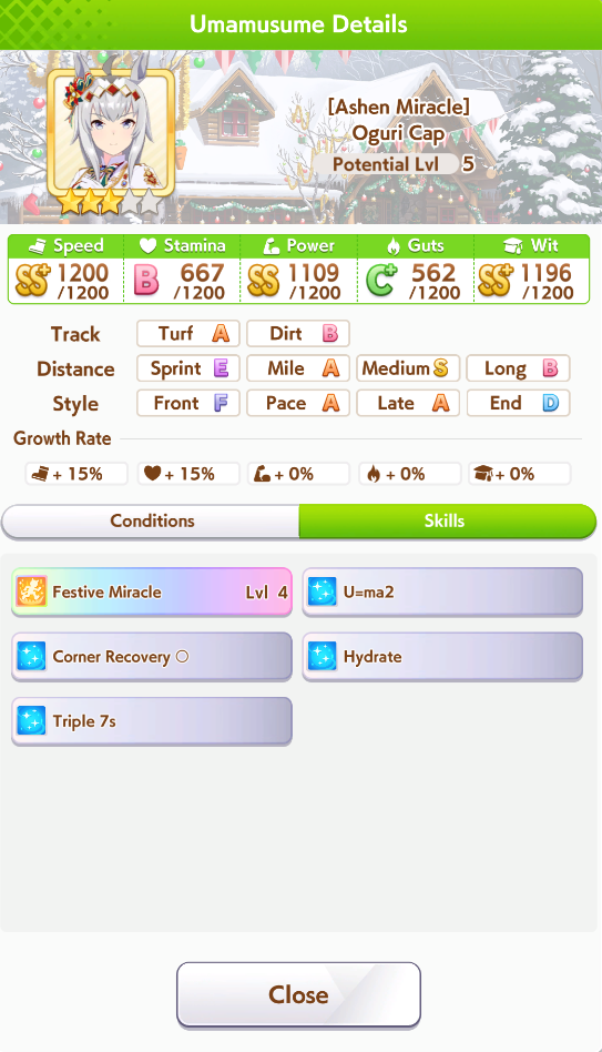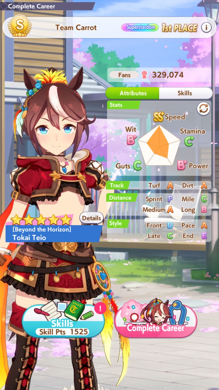 >>736351326It's not really that simple, but you pretty much want to stick to an agenda is if you were doing a fan/parent run in URA/unity. Mile/medium/long combination is simplest, but there are others that need to go on different schedules. Winning sets of races will grant lots of free stats, but it can't be any old race. The races you run matter, but you wanna be doing like 30+ in a career.Then you use energy items and good luck charms to train when you otherwise wouldn't be able to due to no energy from racing all the time. Buy stat boost items, megaphones + bands to maximize training effectiveness. Buy as many cleats as possible, use them on G1s but save 3 master cleats for the final three races to get 20 in each stat times three, one for each twinkle max race. You also want to have 3 max megaphones for the last 3 turns of training as well, good luck charms dont hurt there.cupcakes are always good. The grilled carrots that raise affinity with your team early on can be very useful as there's not many opportunities to raise them past junior year since you'll mostly be racing
