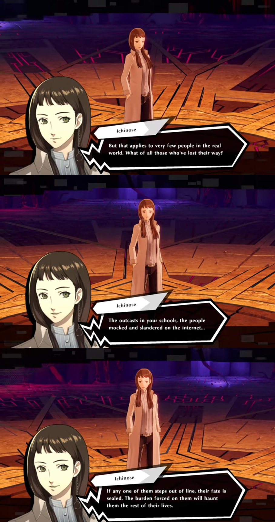 Society is cruel, unfair, and evil. Killing two innocent women is not going to fix it, though. Did everyone forget to unlock the hangman social link? That kid. The brother of the sister killed. Poor kid was devastated. Adachiggers never mention that part.