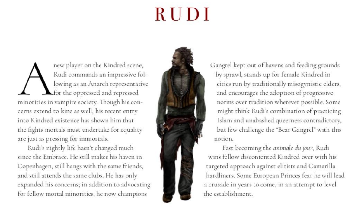 Rudi is an invention of nu-White Wolf for v5, the people who made the previous versions had nothing to do with it.