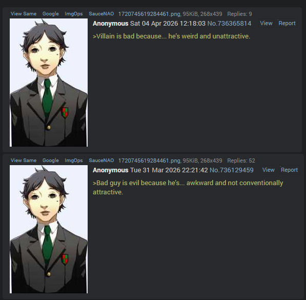 >Villain is bad because... he's weird and unattractive.