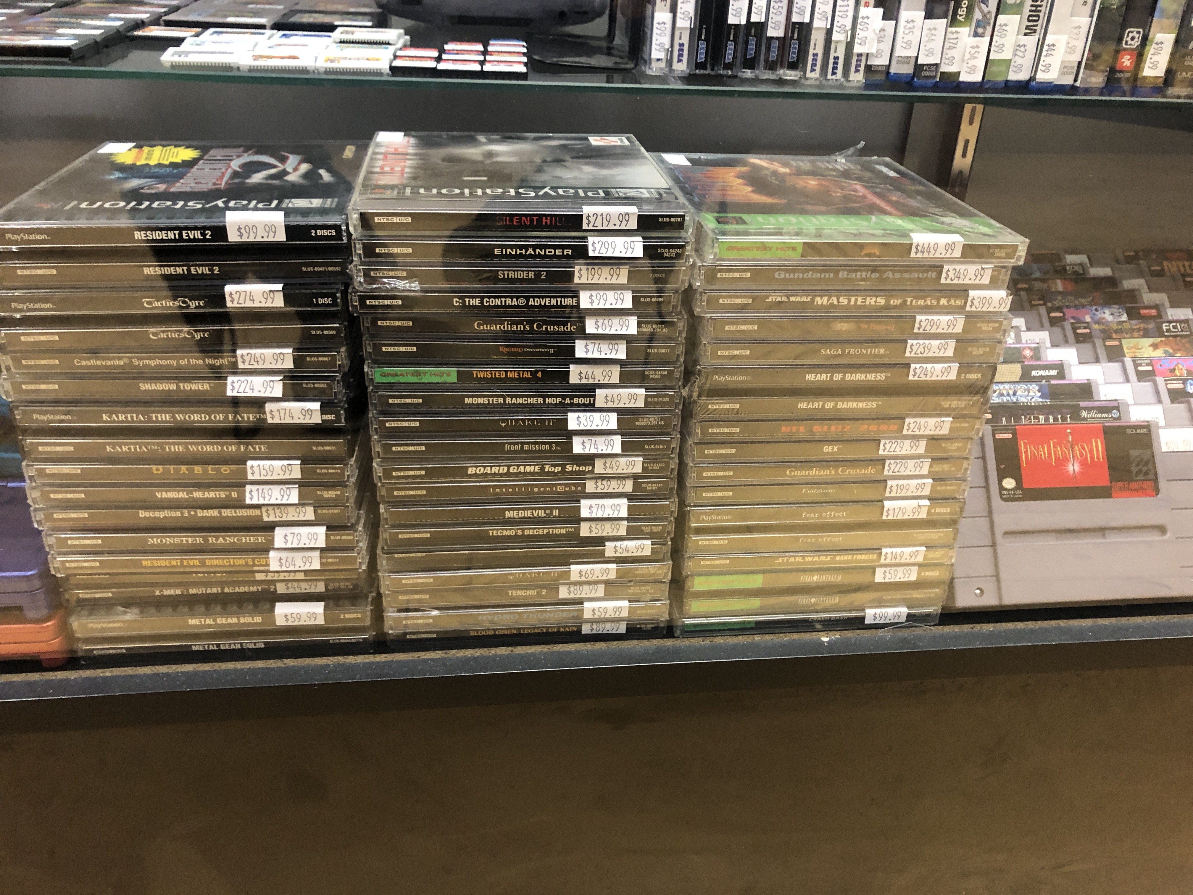 >>736368784Over here in my local Gamelife (Pizzaland rebrand of GameStop) they have a lot of PSX-PS2 titles at around 15-20 euros, 30 for the most popular PSX ones, however those are the titles on the "Used" section, they also have a display case for "Mint Condition" ones, and the only titles they have on there are a couple .Hack ones (in Spanish), Kirby Nightmare in Dream Land, Crash Bandicoot Warped and picrel, each one priced at 100 euros.