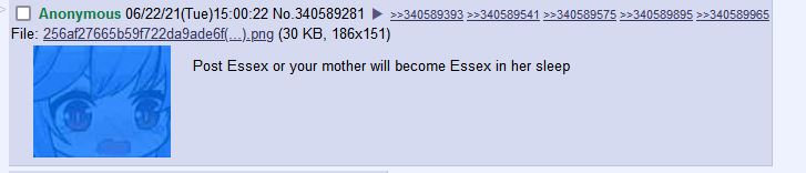 >>736378291there was an Essex thread on that board once, it stayed up for 1 and a half years. i'm still impressed