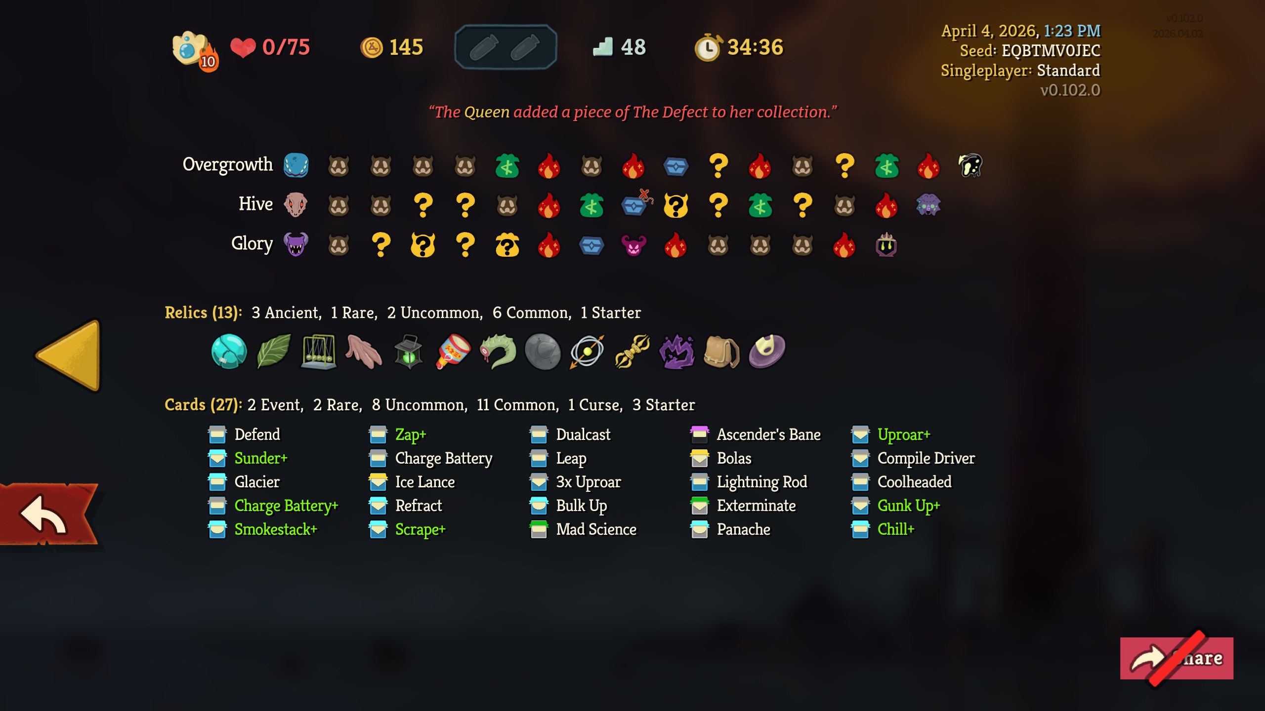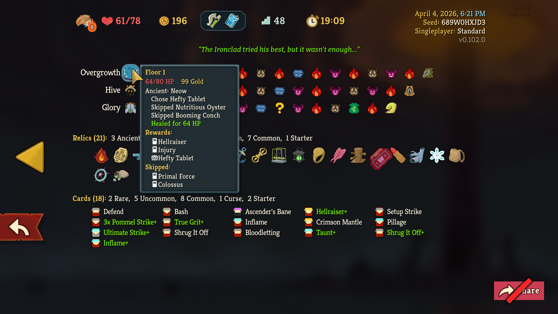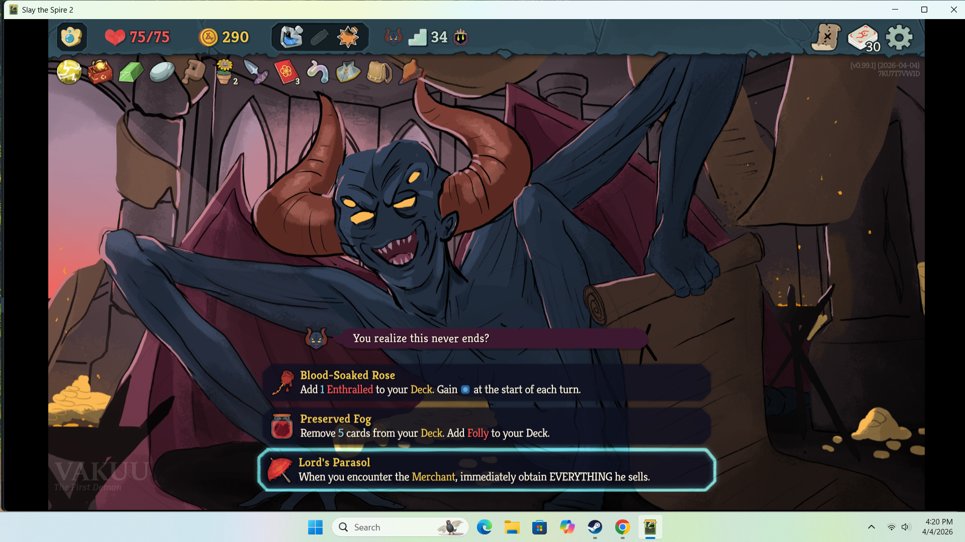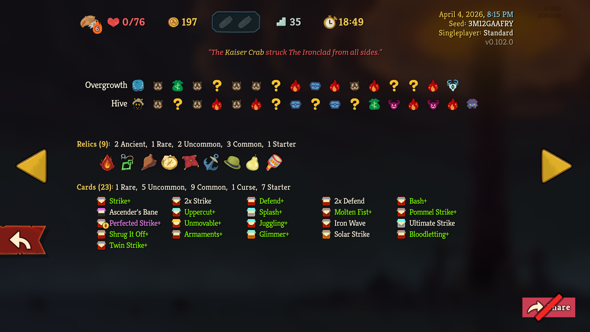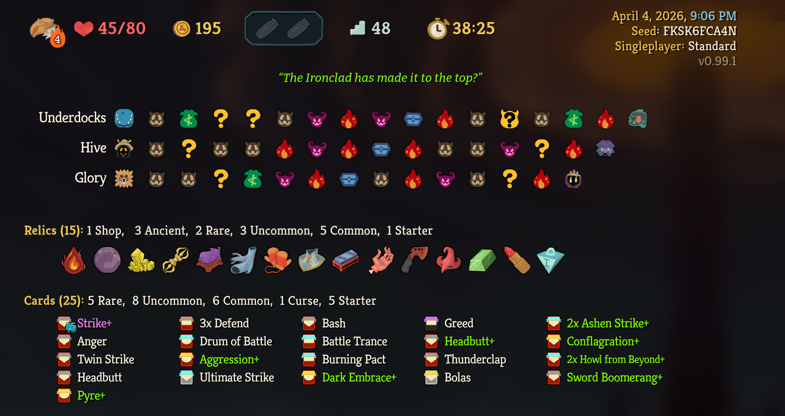 >transform a card, get uproar>fuck it, play on>first card reward is sunderI really got further with this run than I thought I would.