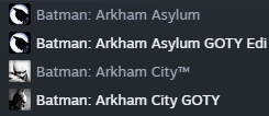 >>736389902They made remasters of Asylum and City and as usual botched the job.