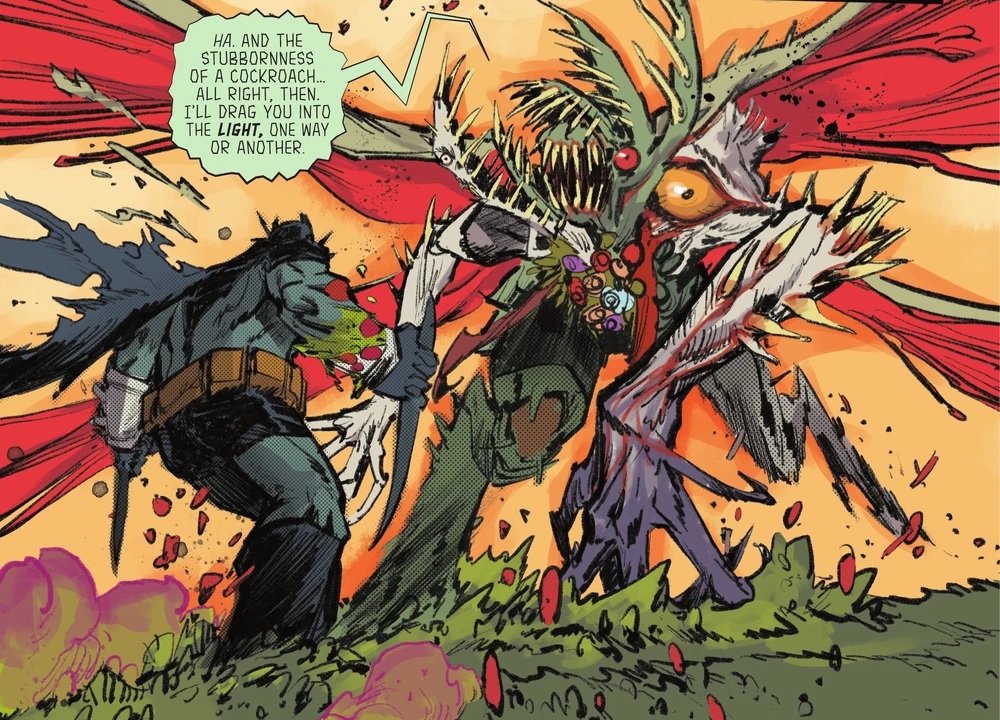>>736398260Instead of turning into a half plant eco-terrorist she instead merges with all the aspects of nature such as other animals, micro-organisms, and fungi and wants to unite all life on earth into one.But materially so far she basically has turned people into Resident Evil style bioweapons and is one herself.In truth her entire narrative is basically a Resident Evil plot with Batman down to Compete Global Saturation.