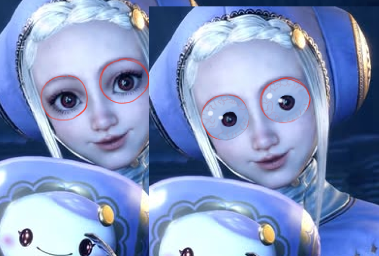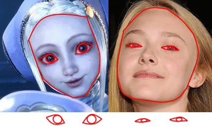 >>736385890needs to be even bigger:since she doesn't wear glasses she must have perfectly round eyes and then the pupils should be in the center of the red circle since she is facing the camera and looking straight ahead.right now the red circle is misaligned.